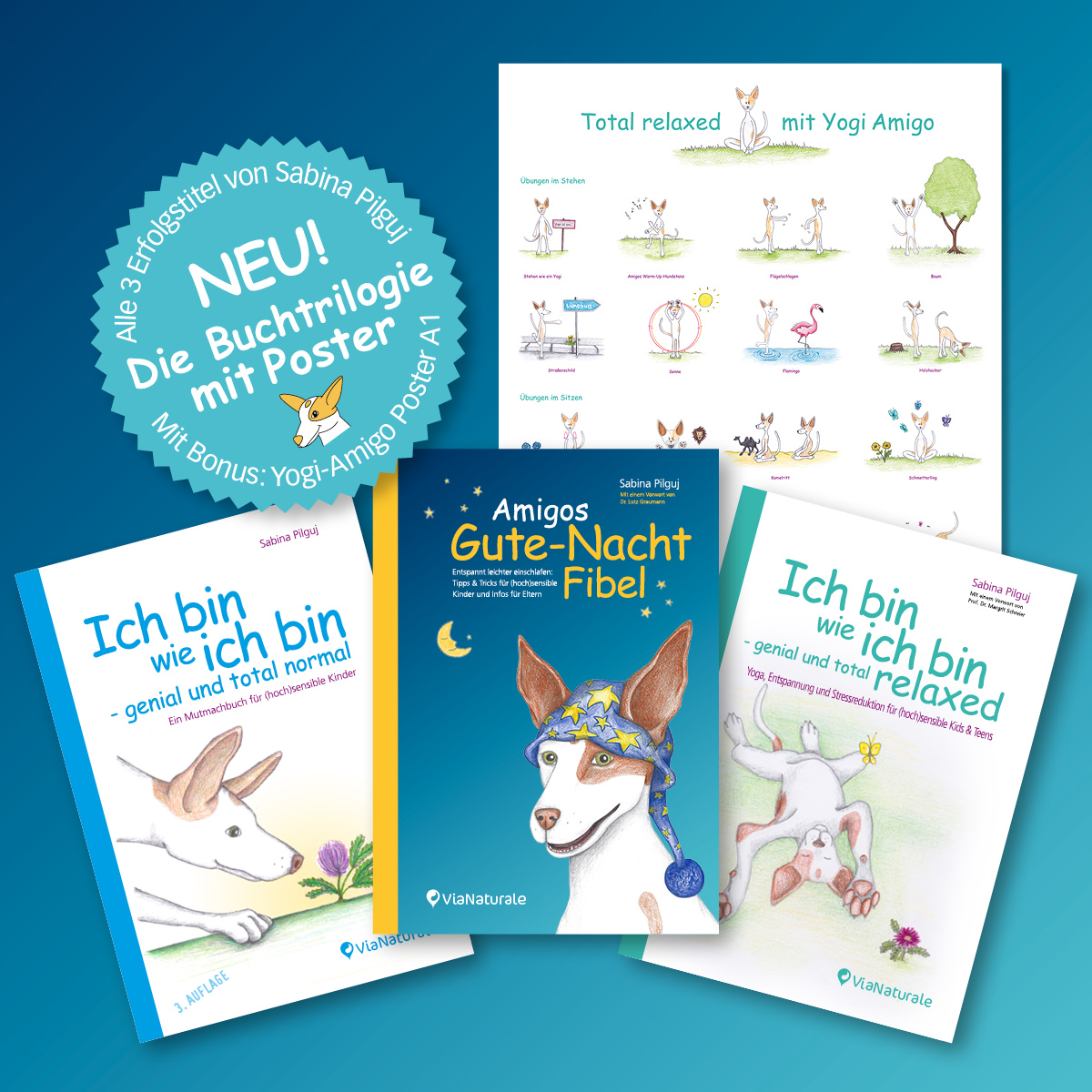 Die Geschichten von Amigo, dem hochsensiblen Hund, machen Kindern Mut, ihre besondere Gabe zu schätzen. Ob Achtsamkeit, Kinderyoga oder gesunder Schlaf – die Amigo-Trilogie ist ein wertvoller Begleiter für sensible Kinder und deren Familien. Jetzt exklusiv: Beim Kauf der kompletten Amigo-Trilogie schenken wir dir das wunderschöne Yogi-Amigo Poster mit allen Kinderyoga-Übungen aus den Büchern! Perfekt für das Kinderzimmer und als tägliche Inspiration.
