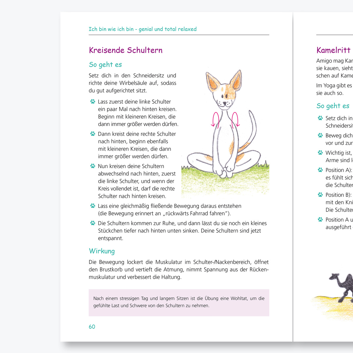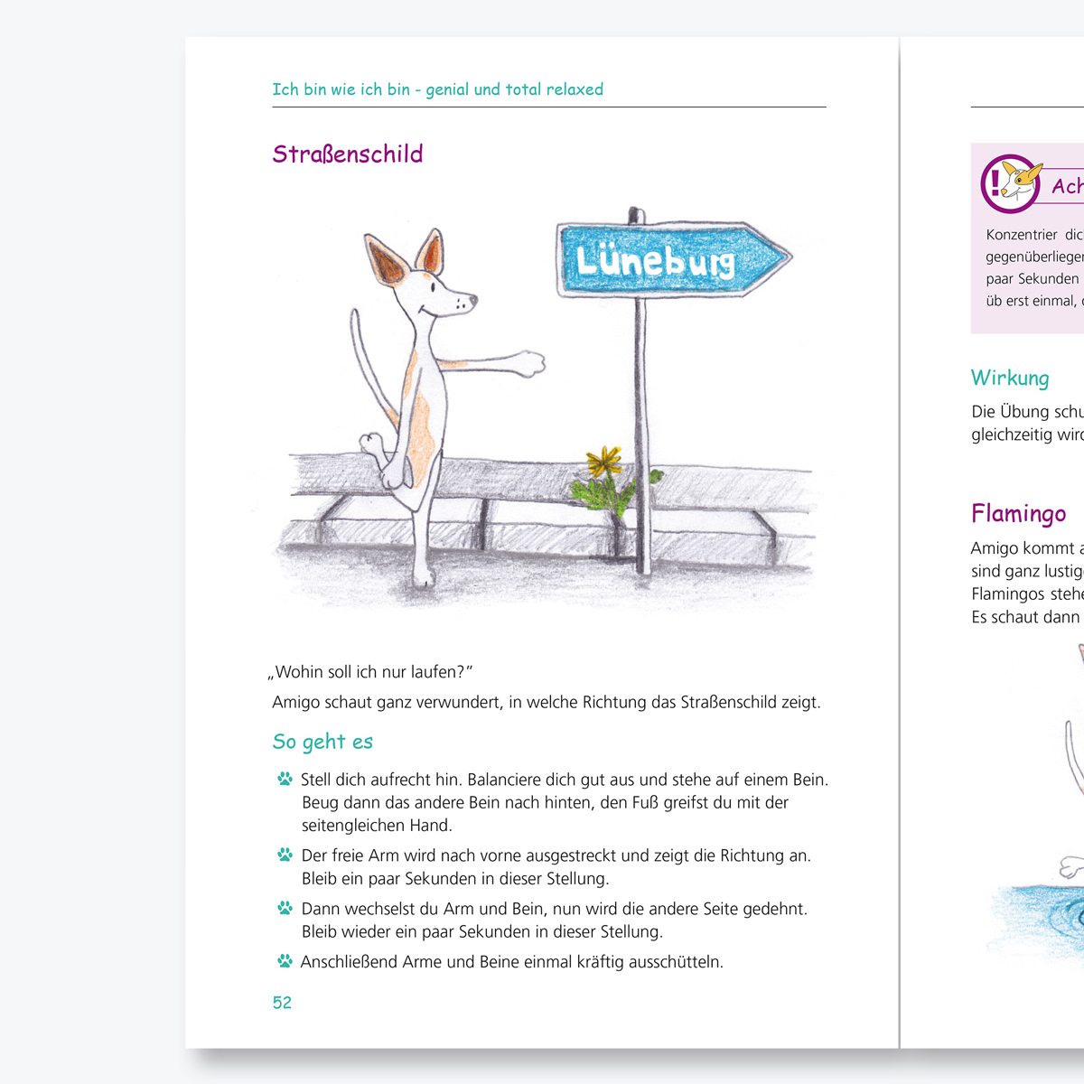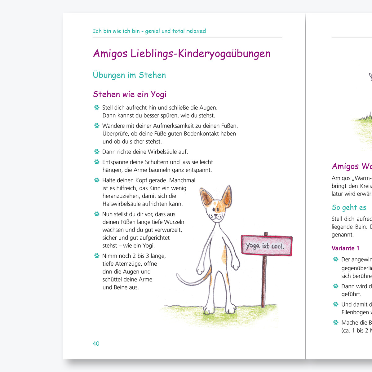 Das Buch „Ich bin wie ich bin – genial und total relaxed“ ist ein ergänzendes Praxisbuch zum Erfolgstitel „Ich bin wie ich bin – genial und total normal“. In seinem zweiten Buch möchte der feinfühlige Hund Amigo den Kindern Übungen aus dem Kinderyoga beibringen und wertvolle Tipps und Tools zum Erlernen von Stressreduktions- und Entspannungstechniken geben, damit sie sich in ihrem Alltag wohler fühlen.
