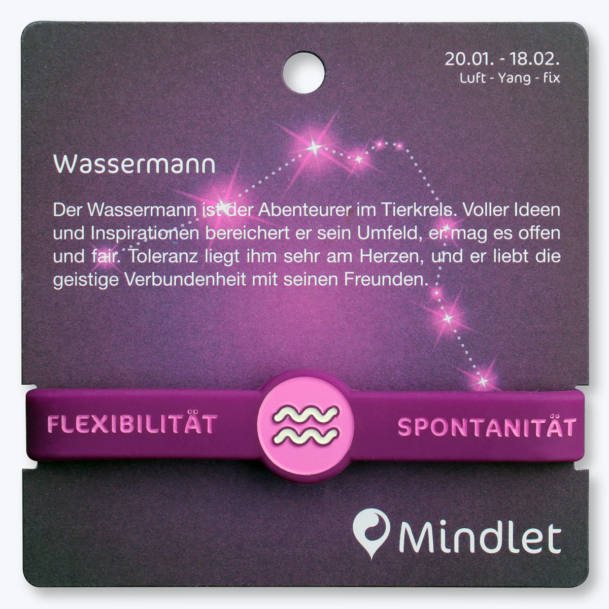 - Mindlet Wassermann (21. Januar – 19. Februar)